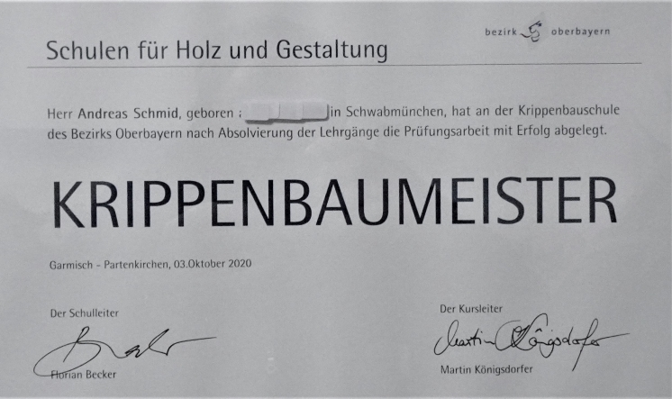 Andreas Schmid Krippenbaumeister (Einzelunternehmer) Am Röthenbach 686862 Kleinkitzighofen